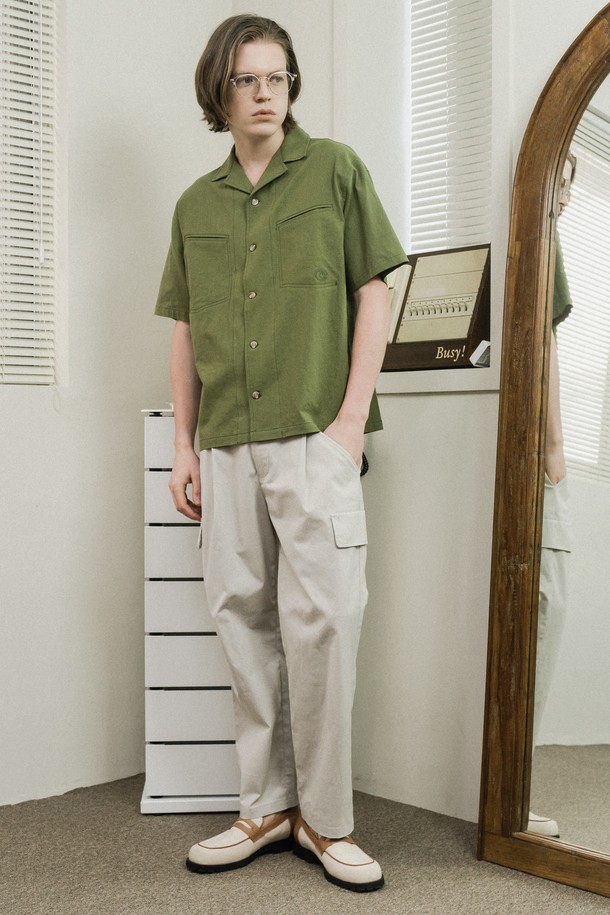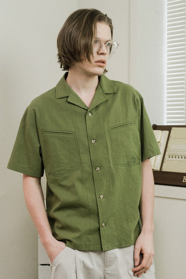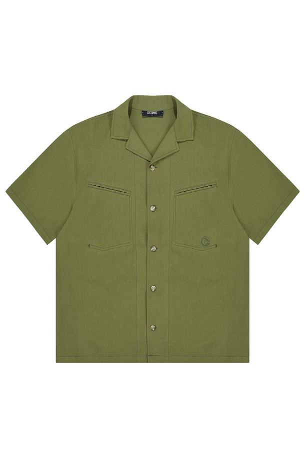 [커스텀어스] 사선입술포켓 린넨 반팔셔츠 CXS24MWSH501 KHA