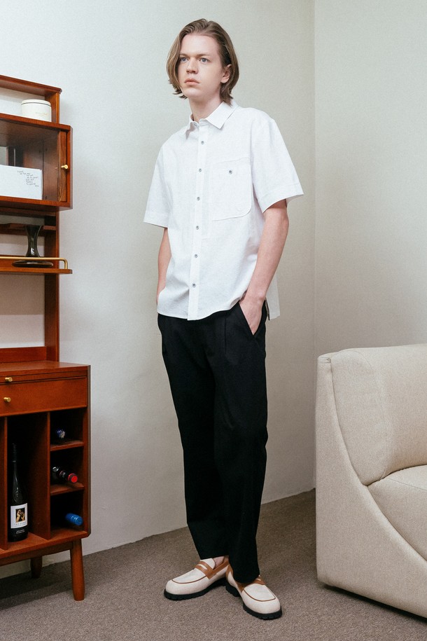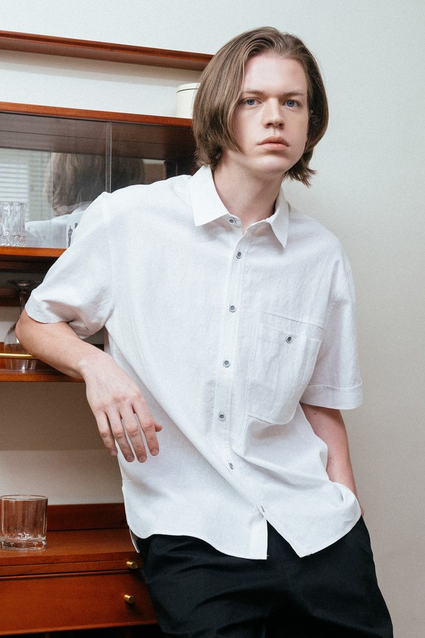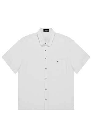[커스텀어스] 비대칭절개라인 로고자수 반팔셔츠 CXS24MWSH488 WHI