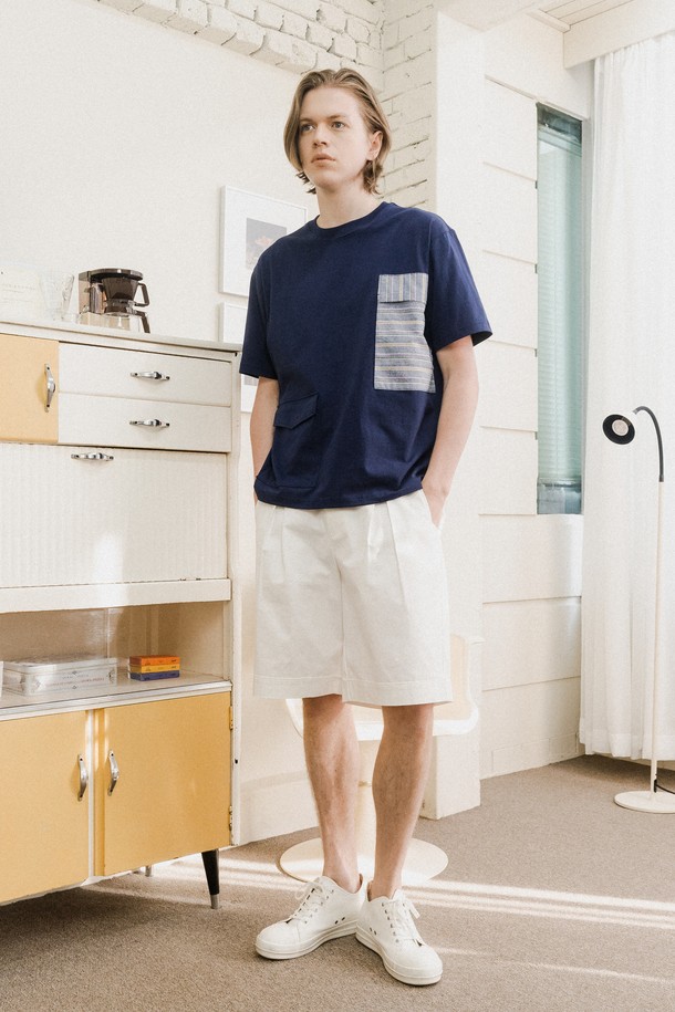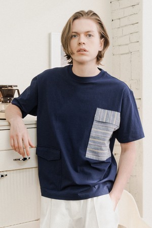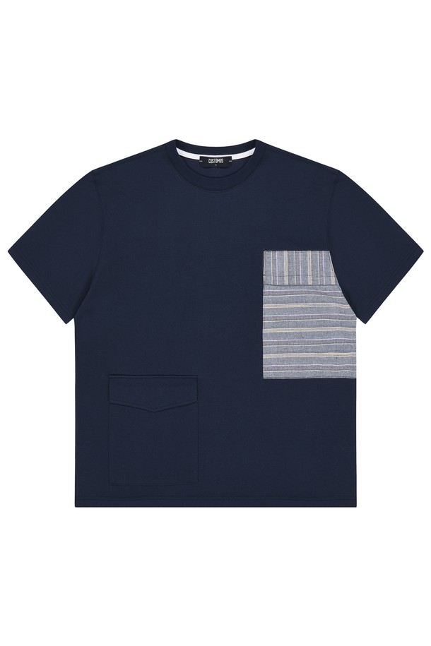[커스텀어스] 프린트 포켓배색 라운드 반팔티셔츠 CXS24MKRT506 NAV