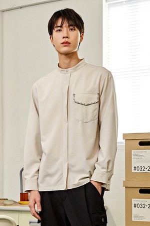 [커스텀어스] 밴드넥 버튼홀 포켓 셔츠 CXS23WWSHA89