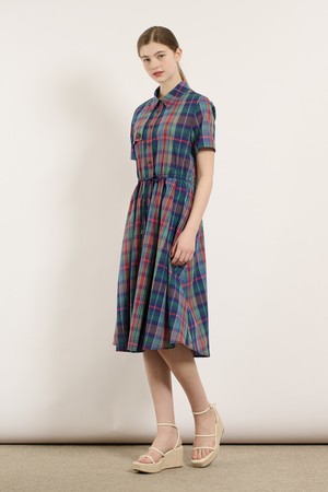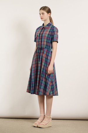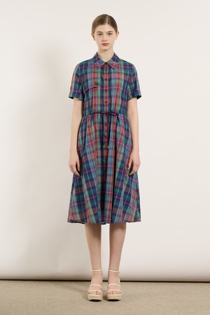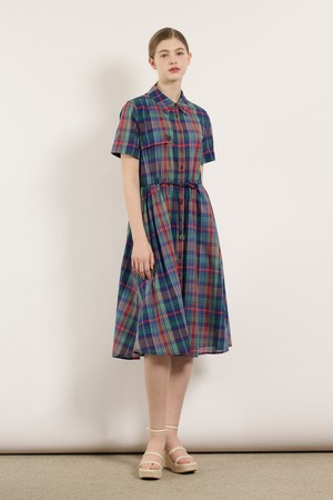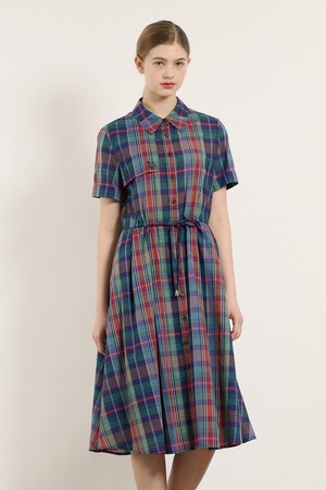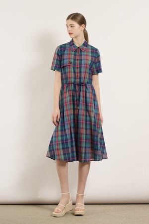 [25SU] 스트링 체크 반소매 원피스 - GREEN B5M4O63142