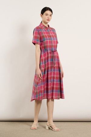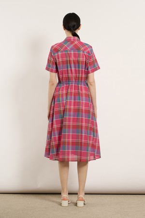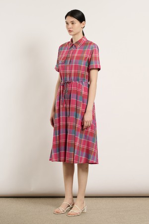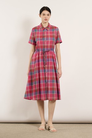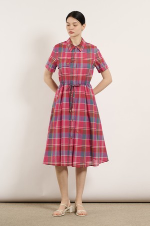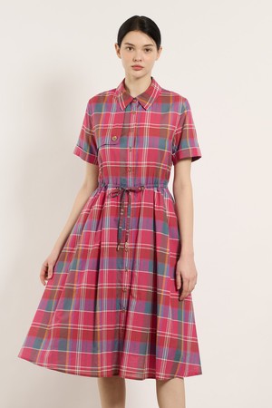 [25SU] 스트링 체크 반소매 원피스 - PINK B5M4O63122