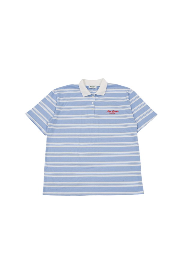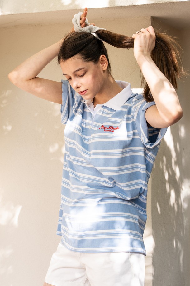 [몽버디 에센셜] 토미 스트라이프 카라넥 반팔 티셔츠 L.BLUE
