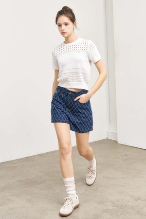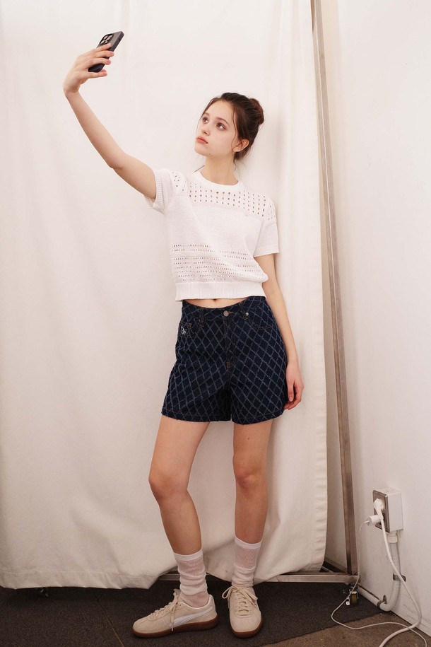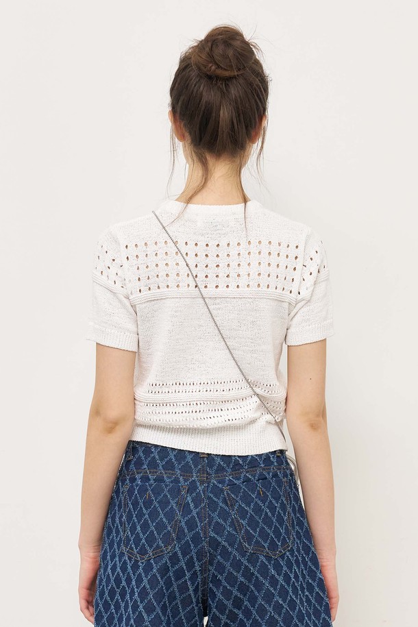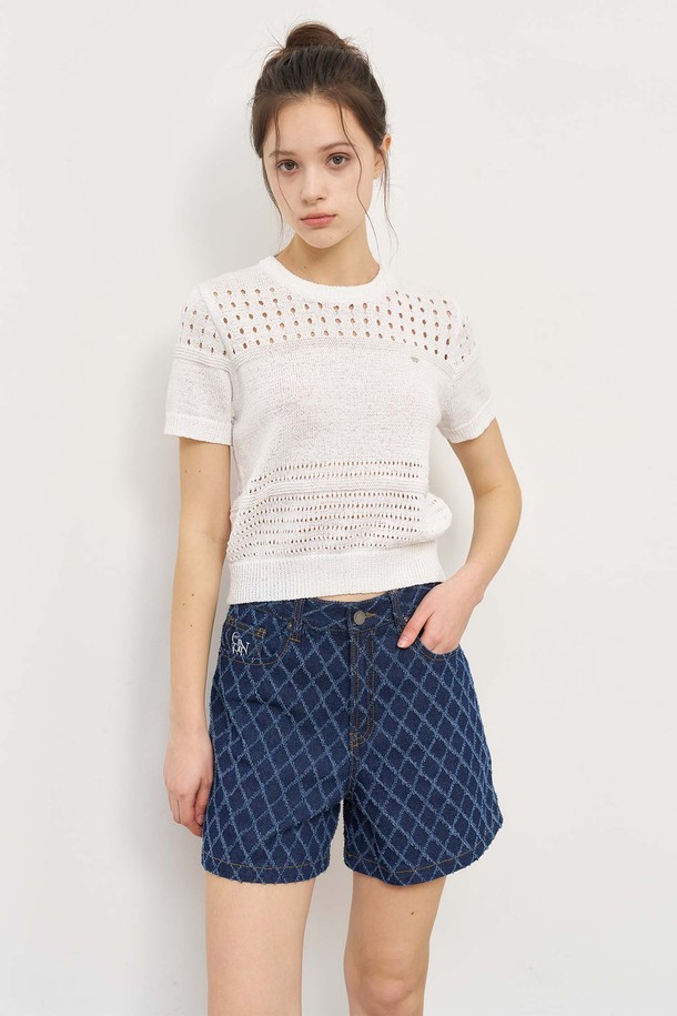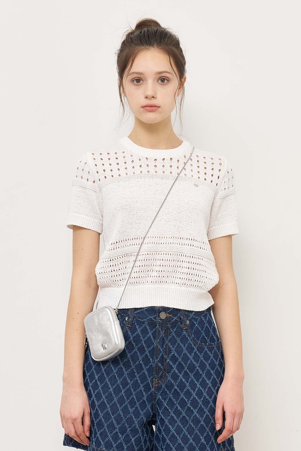 [25SS] WOMAN 펀칭 믹스 하프 니트 [WHITE] / WBE2L05554