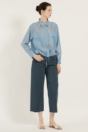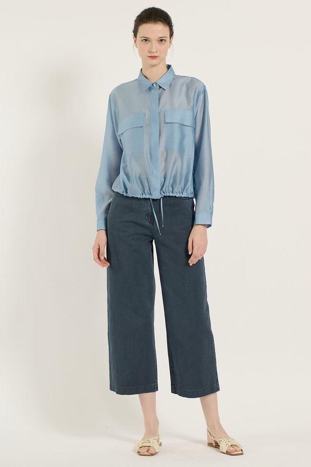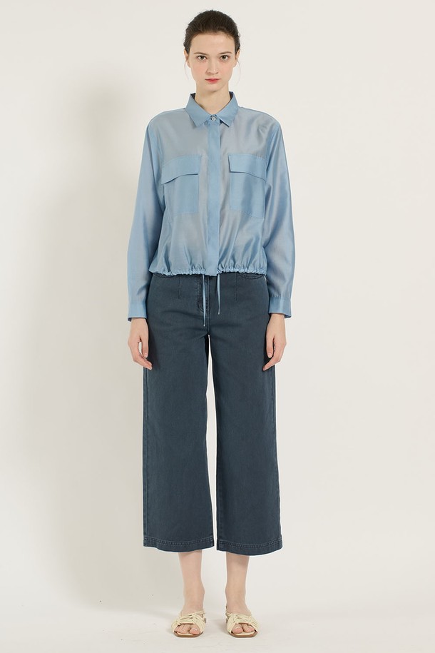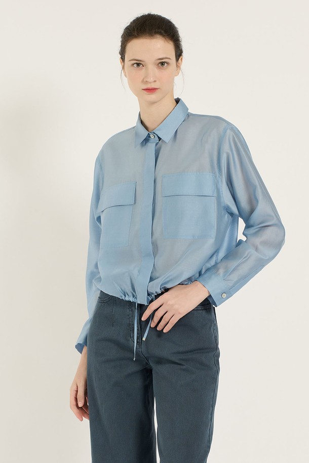 [25SU] 스트링 포켓 실키블라우스 - LIGHT BLUE B5B3B40451