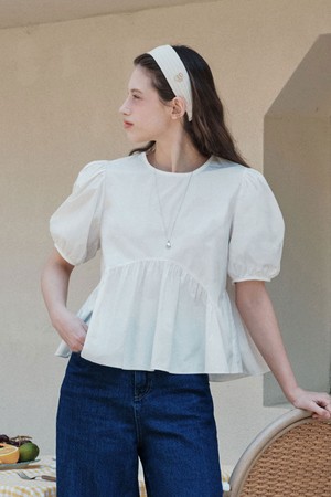 데이지 퍼프 블라우스 / 화이트(반팔ver)