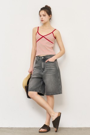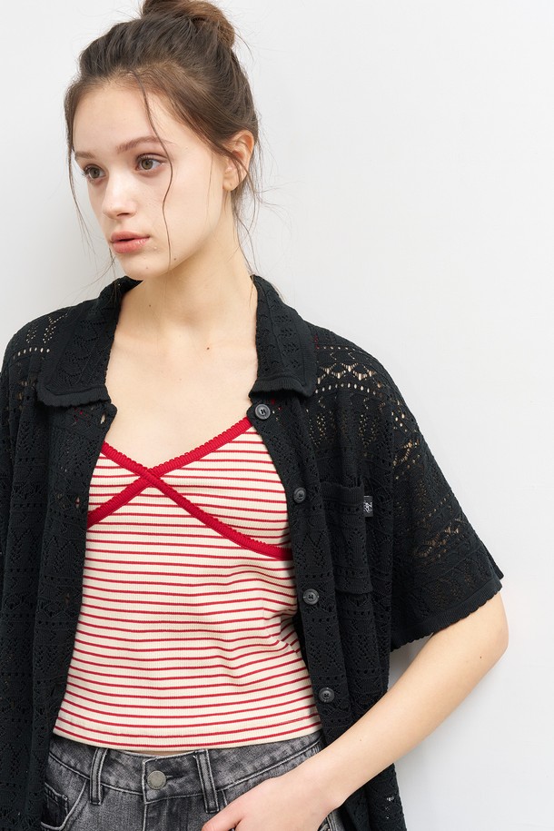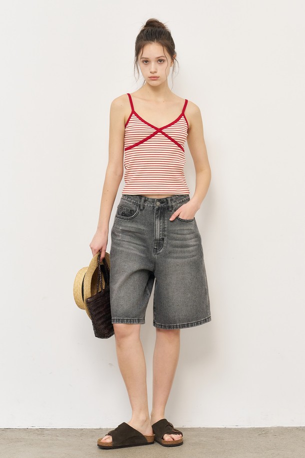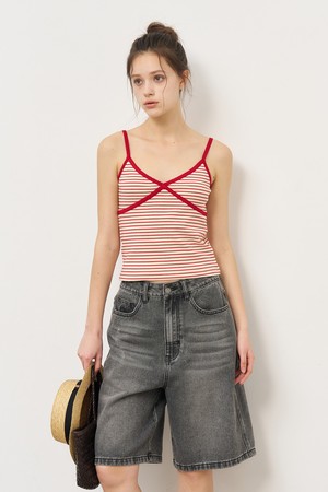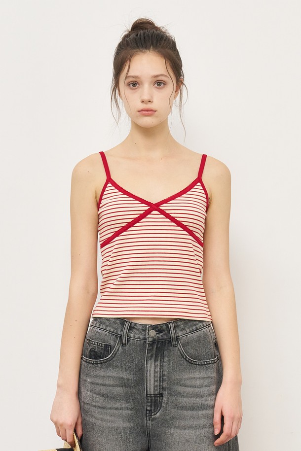 [25SS] WOMAN 스트라이프 리브드 슬리브리스 [RED] / WBE2L01545
