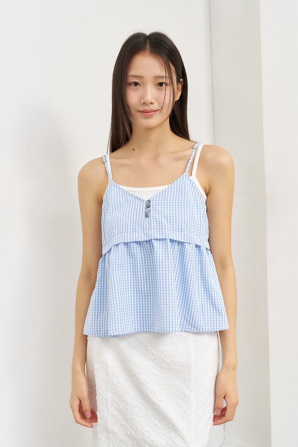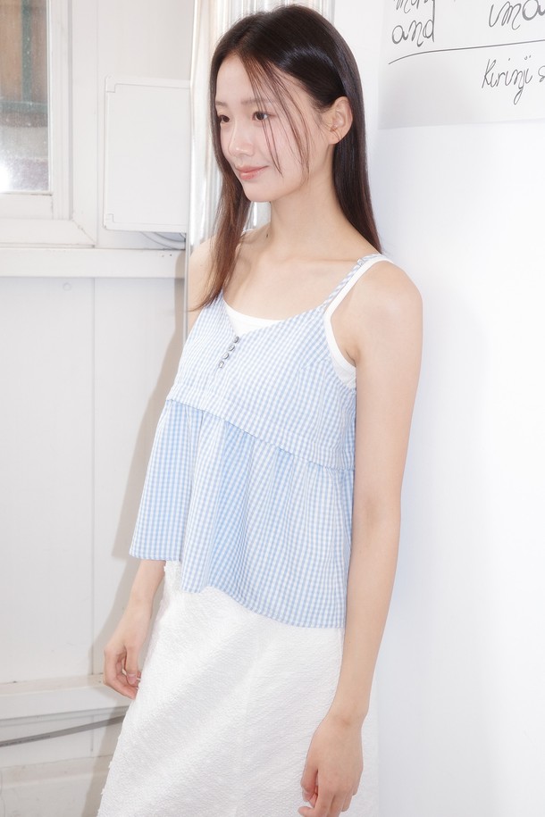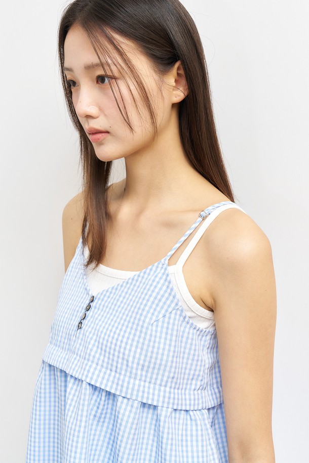 [25SS] WOMAN 시어서커 슬리브리스 블라우스 [BLUE] / WBE2L03521