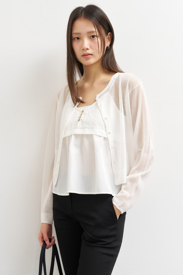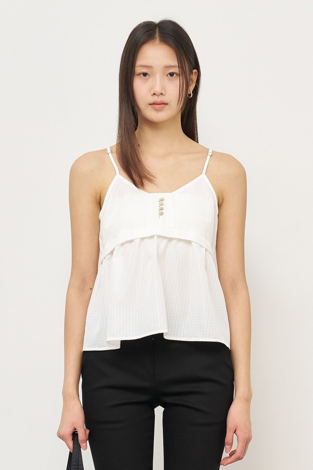 [25SS] WOMAN 시어서커 슬리브리스 블라우스 [WHITE] / WBE2L03521