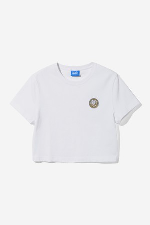 여성 크레스트 로고 크롭 슬립핏 티셔츠[WHITE](UB5ST50_31)