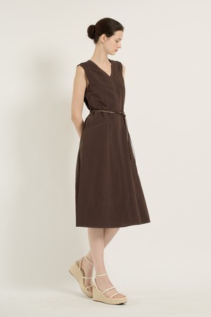 [25SU] 브이넥 민소매 원피스 - BROWN B5B5O64474
