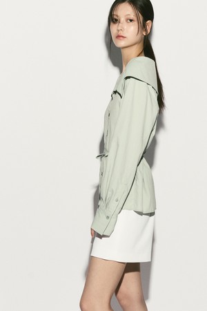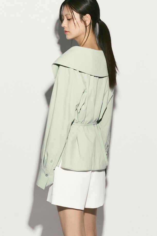 WIDE COLLAR BELTED BLOUSE SEASALT