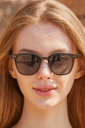 WOMEN 레이어드 뿔테 무지 올블랙 자외선 차단 선글라스 [TMGBK]