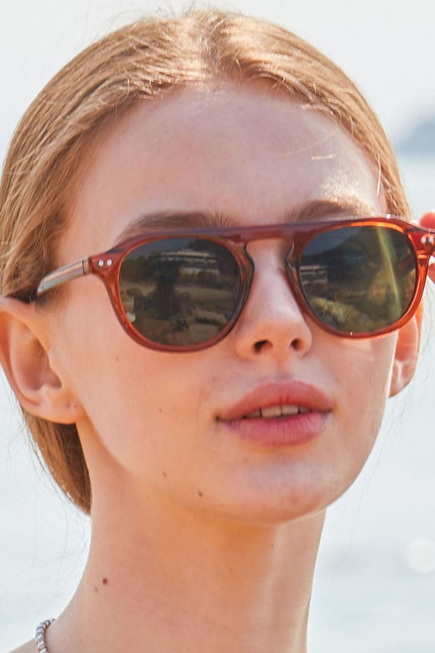 WOMEN 레이어드 뿔테 브라운블랙 빅라운드 자외선 차단 틴트 선글라스 [BRCBB]