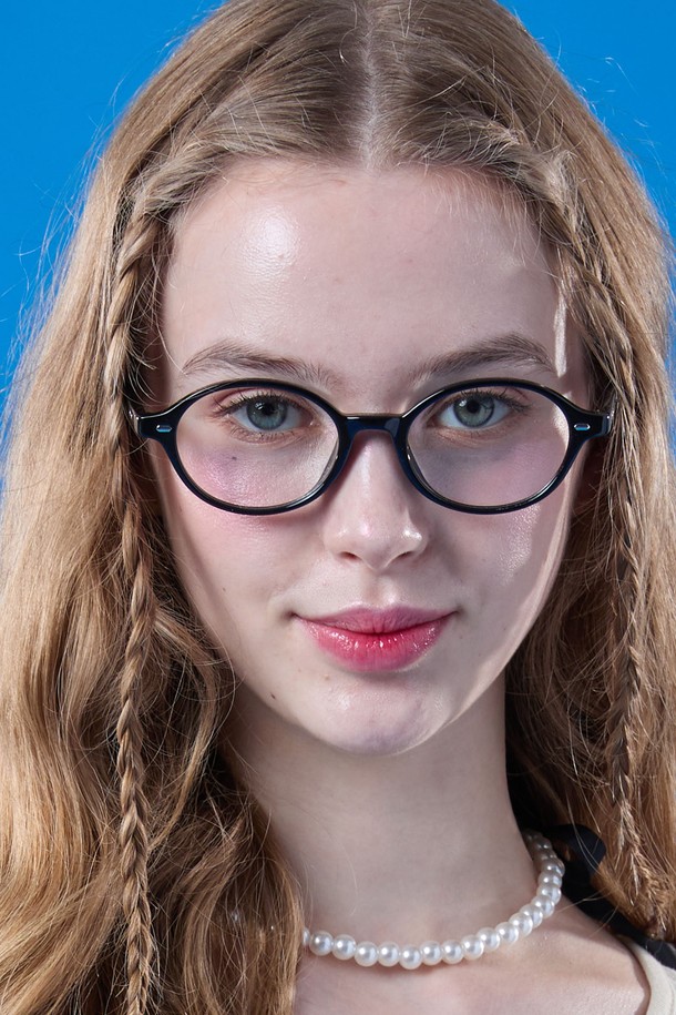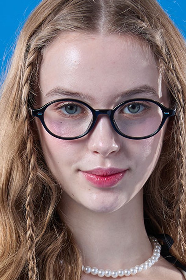 WOMEN 레이어드 뿔테 블랙 라운드 블루라이트 차단 안경 [BKRDB]