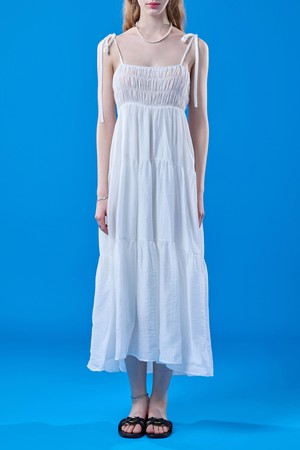 데이지 바스락 리본 여름 프릴 레이어드 나시원피스 [WHITE] KCL.