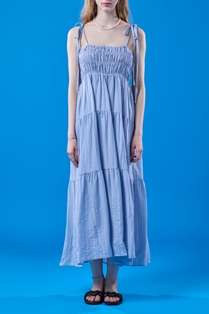 데이지 바스락 리본 여름 프릴 레이어드 나시원피스 [BLUE] KCL.