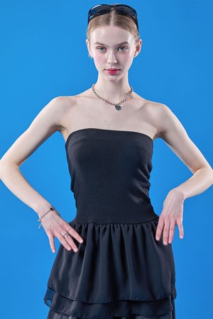 미디 오프숄더 탱크탑 레이어드 나시 이너 탑 [블랙]