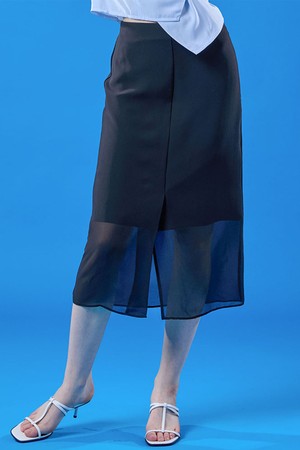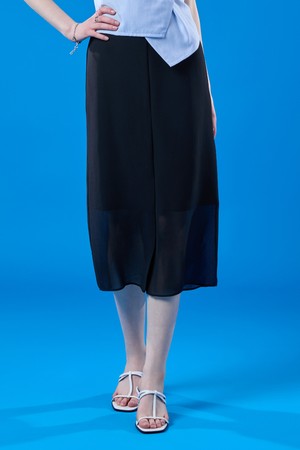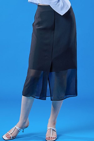 시스루 쉬폰 트임 쿨링 레이어드 롱스커트 [BLACK]
