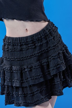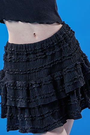 쿨링 레이스 쉬폰 프릴 캉캉 미니스커트 [BLACK] KCL.