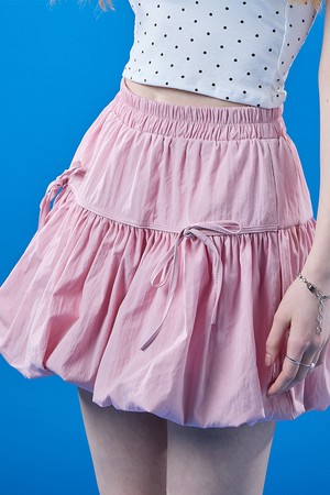 벌룬 리본 플레어 밴딩 미니스커트 치마바지 [PINK]