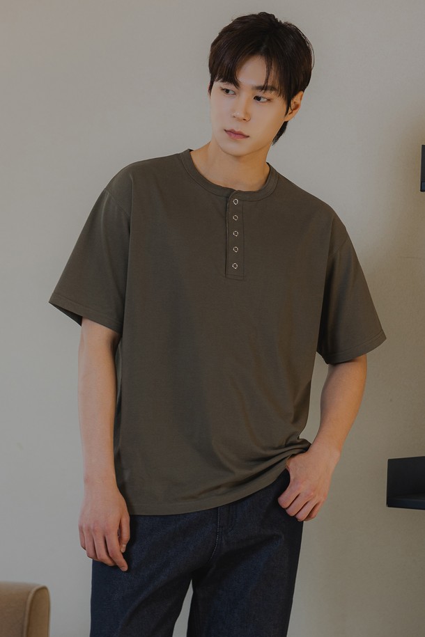 [CP3중지]5버튼 무지 스냅 헨리넥 반팔티 BK4221