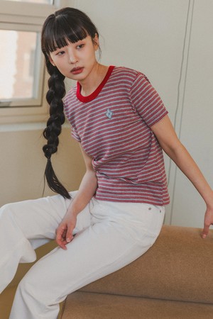 스트라이프 크롭 반팔 티셔츠 BK4206