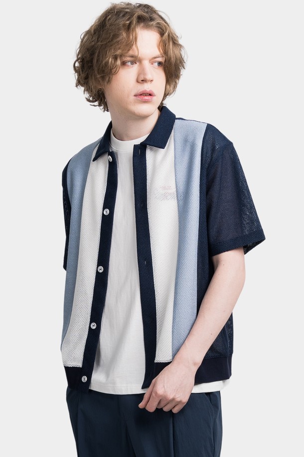 썸머 쿨링 강연 남자 반팔 카라 가디건 CXS25MKCD402 NAV