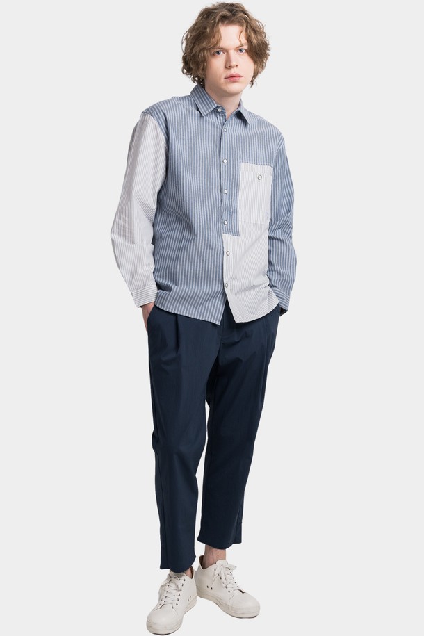 썸머 쿨링 단추 포인트 9부 원턱 스트레이트핏 남자 밴딩 팬츠 CXS25MWPT604 NAV