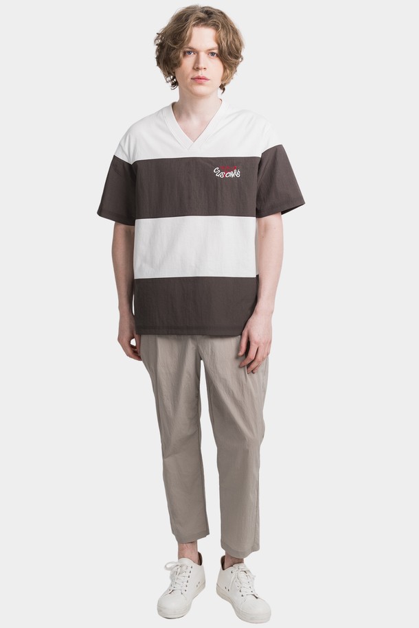 썸머 쿨링 단추 포인트 9부 원턱 스트레이트핏 남자 밴딩 팬츠 CXS25MWPT604 BEI