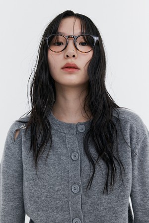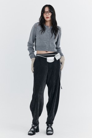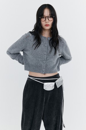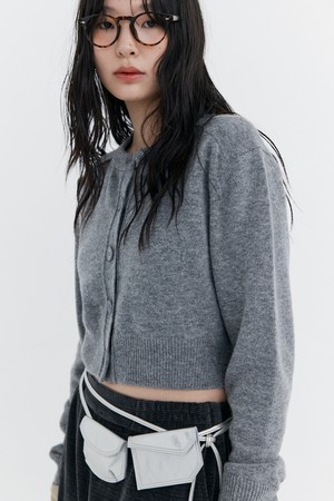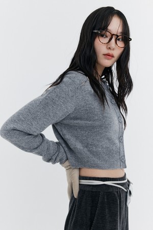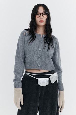 Open Point Crop Knit Cardigan_Grey