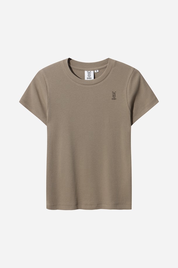 골지 라운드 반팔 티셔츠 여자(DARK BEIGE)
