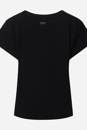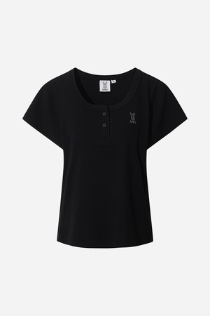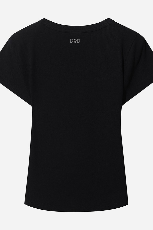 골지 라운드 반팔 티셔츠 여자(BLACK)