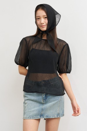 WOMAN 시스루 플라워 스카프 블라우스 [3COL] / WBE2L03528