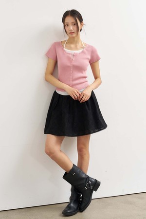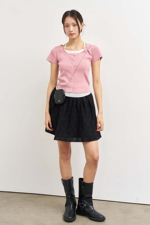WOMAN 레이스 볼륨 자수 미니스커트 [2COL] / WBE2L13515