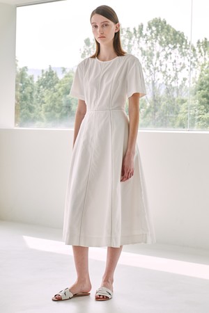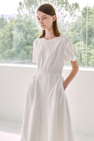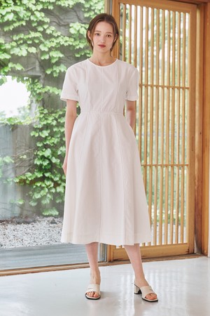 스티치 플레어 드레스 - 화이트 / Stitch Flare Dress - White
