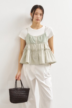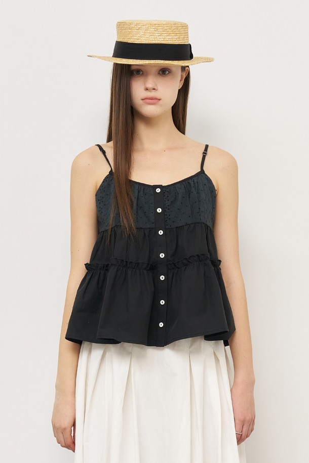 WOMAN 셔링 버튼 슬리브리스 블라우스 [3COL] / WBE2L03527
