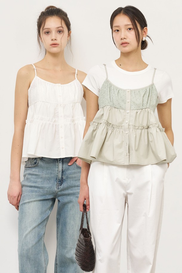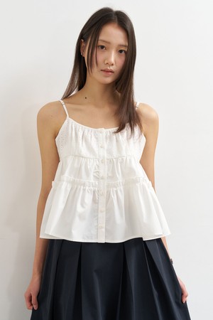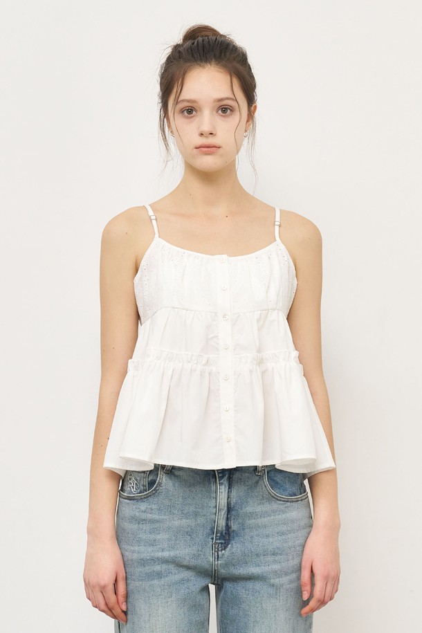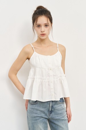 WOMAN 셔링 버튼 슬리브리스 블라우스 [3COL] / WBE2L03527