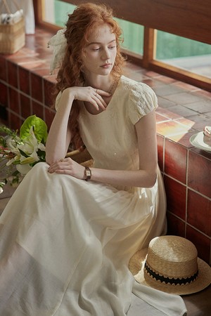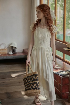 Half embroidery puff sleeve dress