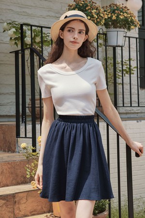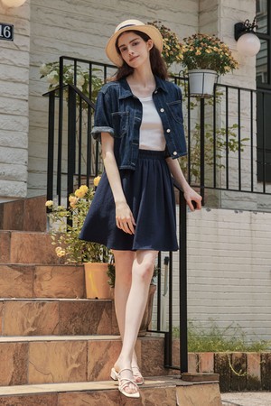 린넨 밴딩 숏 팬츠 스커트 / 네이비