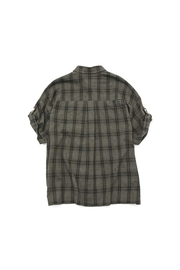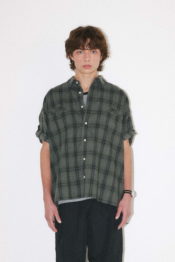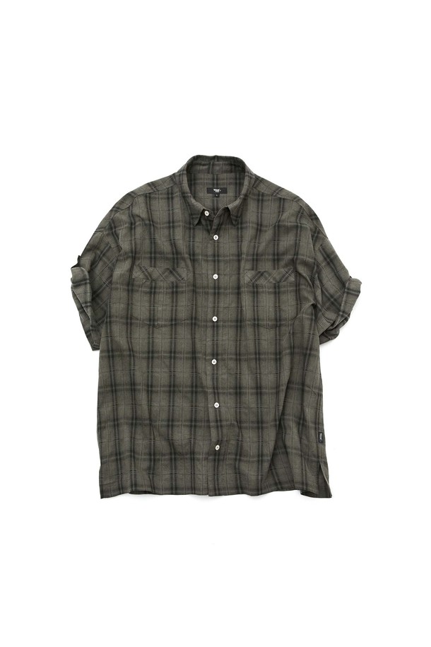 포켓 체크 반팔셔츠_CHARCOAL GREY