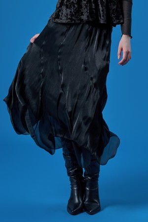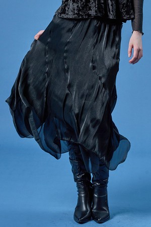 쉬폰 플레어 언발란스 롱스커트 [BLACK] KCL.