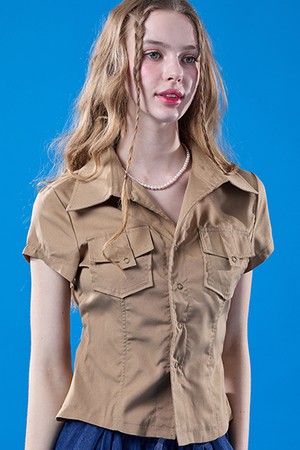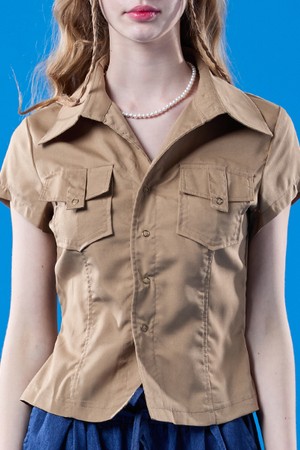 여름 시티 사파리 크롭 슬림 반팔셔츠 [BEIGE] KCL.