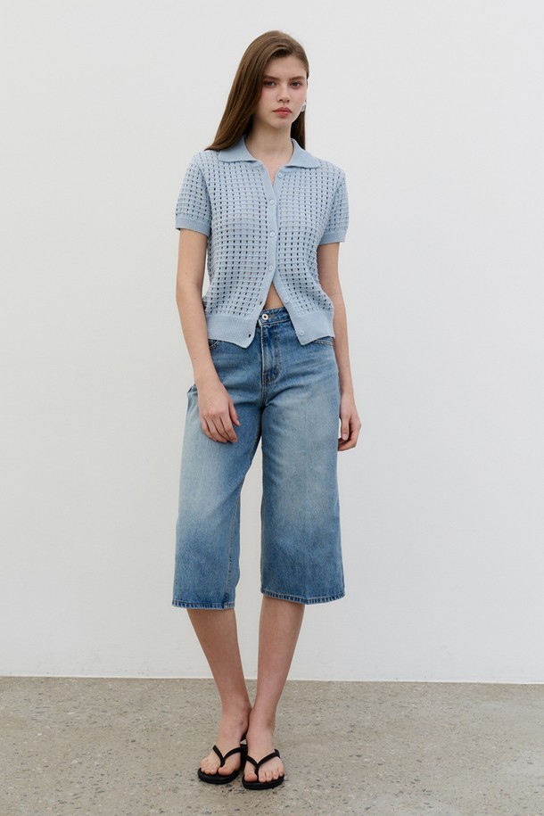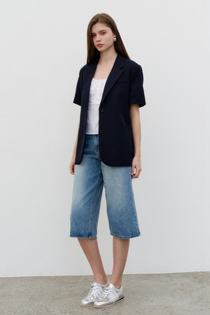 클린컷 스트레이트 버뮤다 데님팬츠 Bermuda Denim Pants BLUE