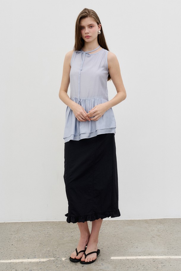 리본 넥 레이어드 민소매 블라우스 Ribbon neck layered sleeveless blouse Skyblue