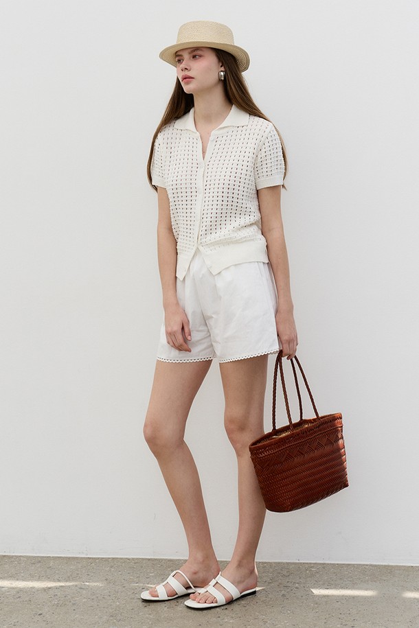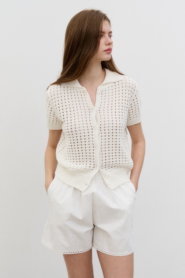썸머 펀칭 니트 카라 가디건 Punching Knit Collar Cardigan White