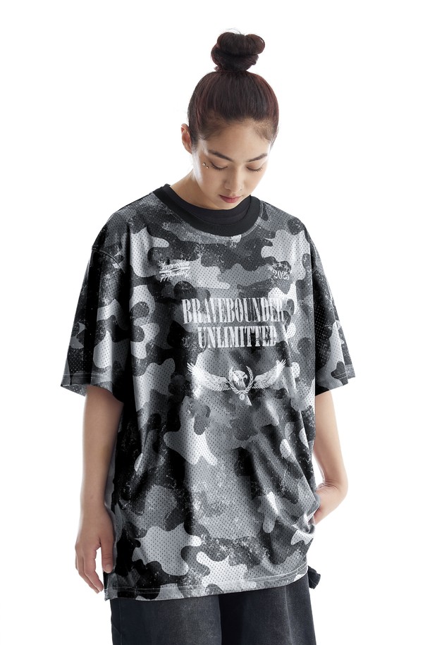 씨알에스디엘 로고 데스이글 카모 메쉬 럭비 져지 반팔 티셔츠