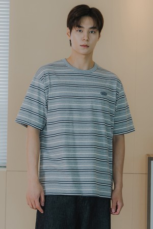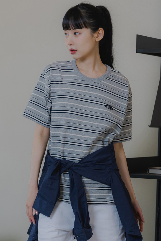 미니멀 로고 스트라이프 반팔 티셔츠 BK4209