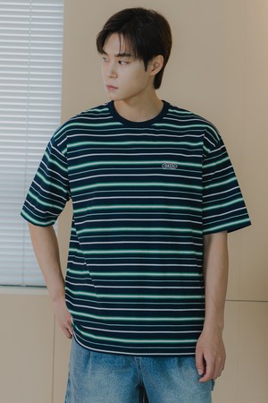 미니멀 로고 스트라이프 반팔 티셔츠 BK4209