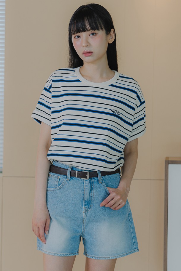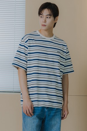 미니멀 로고 스트라이프 반팔 티셔츠 BK4209